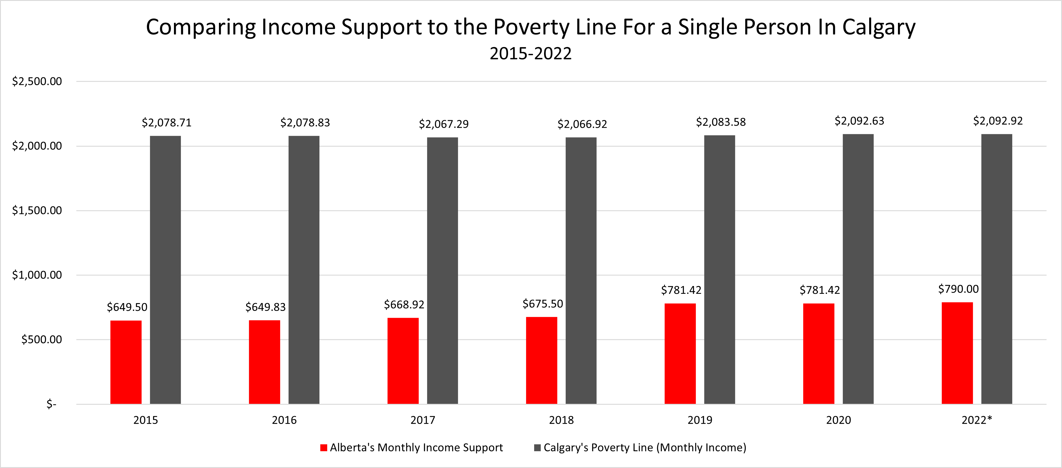 It was around this time in 2018 when VCC published Bill 26: An Act to Combat Poverty and Fight for Albertans with Disabilities. The bill involved a modest increase to benefit rates, an increase to asset thresholds, and an indexation of benefits to the Consumer Price Index (CPI). The social services sector saw this change as “momentous, long-hoped for, and crucial.” After years of advocacy through letter writing, and research, our collective voices were finally heard. It was a small step in the right direction towards income security for those most in need.